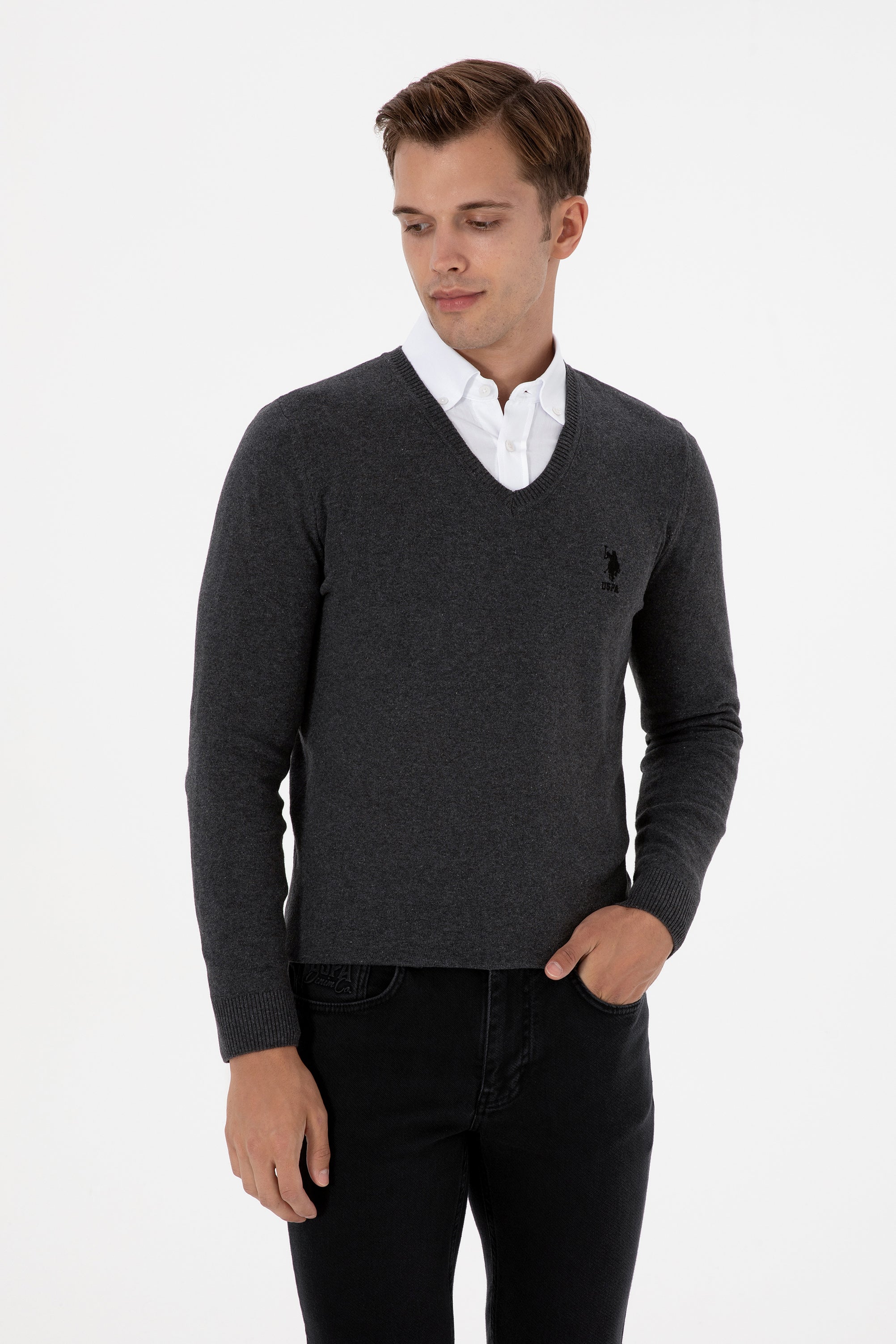 USPA Men Jumper V/NeckAnthracite VR081 USPJR408 US POLO ASSN.
