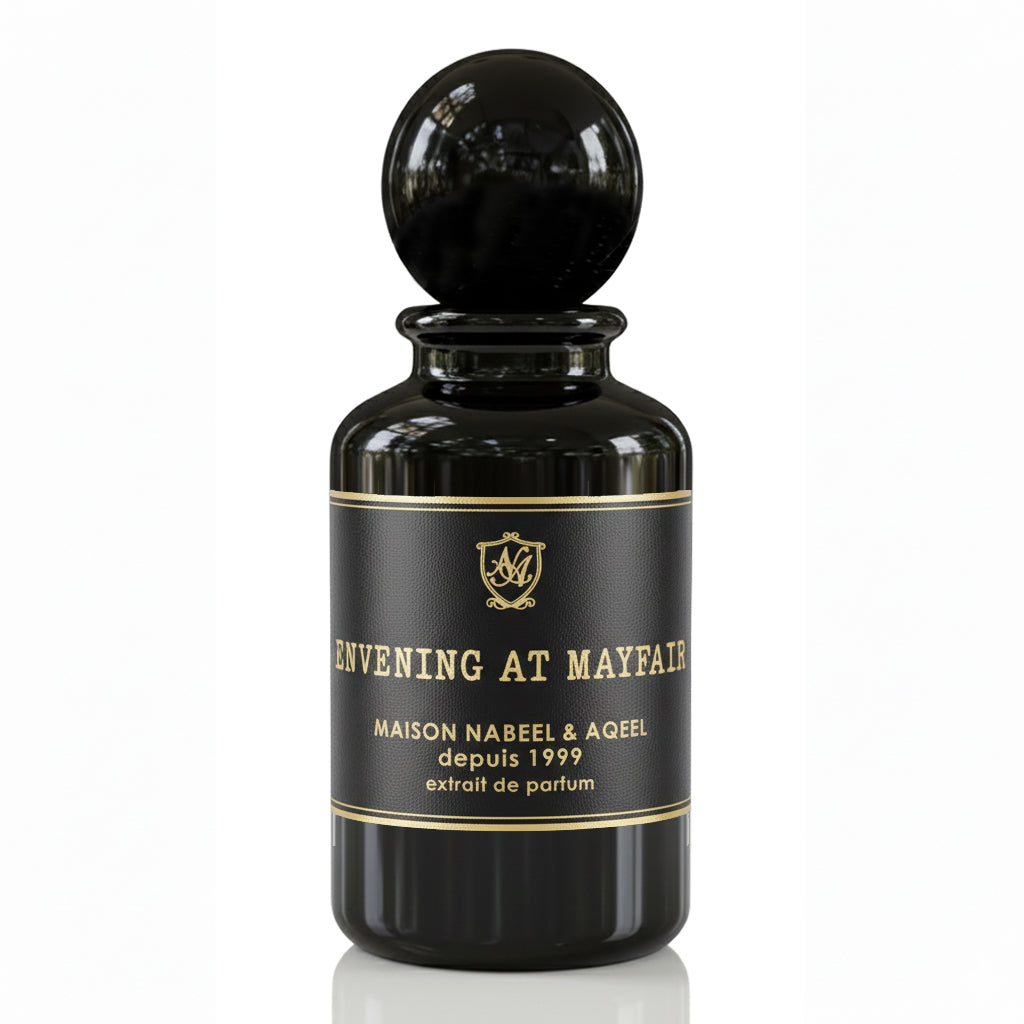 "Evening at Mayfair" is a sensory journey through the luxurious streets of London's iconic district. Imagine stepping into an opulent, old-world mansion, where the scent of rose wrapped in amber wafts from an intricately carved wooden drawer, adorned with cedar and pine. As you open the drawer, the fragrance unfolds, revealing a rich, animalic euphoria that lingers, unforgettable and alluring. This woody-floral masterpiece combines citrusy bergamot and grapefruit with spicy saffron and cardamom, blossoming into jasmine and Bulgarian rose, before settling into a warm, sensual base of leather, oud, cedar, and amber. "Evening at  Mayfair" is a statement-making fragrance, perfect for those who crave luxury and sophistication.