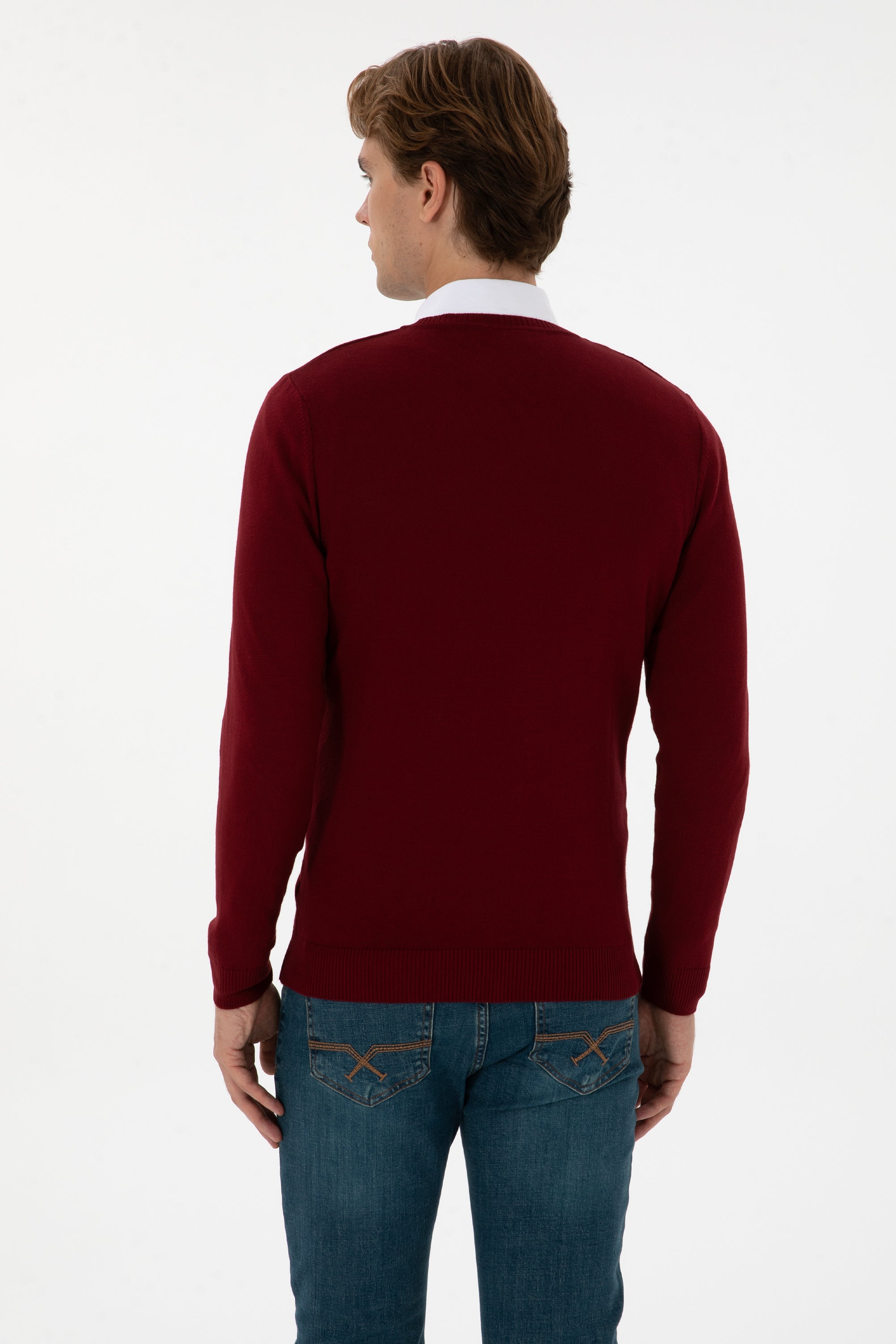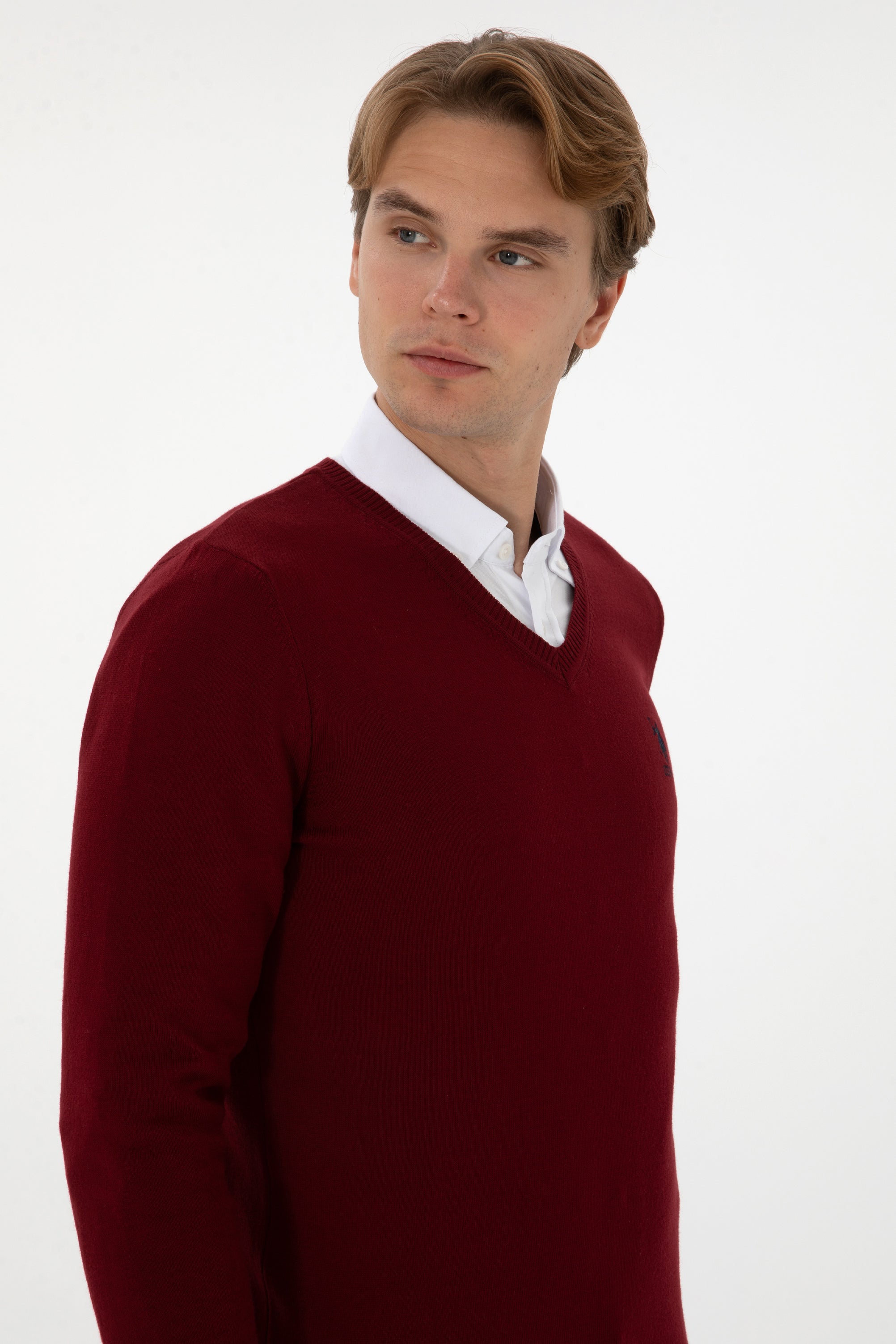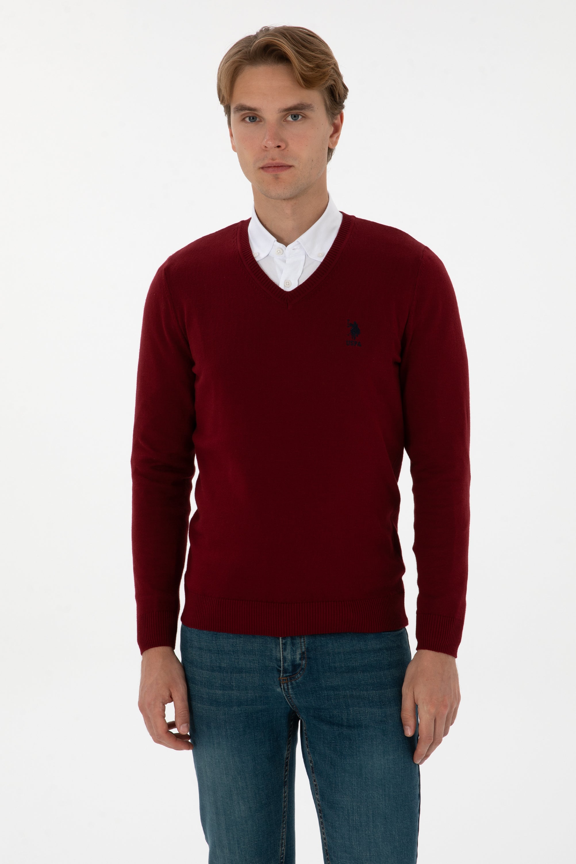 USPA Men Jumper V/Neck Bordeaux VR014 USPJR392 US POLO ASSN.